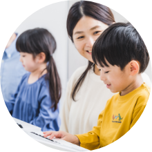 想像することが大好きな3歳。耳の力がぐんと伸びる4・5歳。ピアノ・エレクトーンの演奏を通して、「きく」「うたう」「ひく」「よむ」の要素をバランスよく学習し、無理なく総合的な音楽力を育みます。